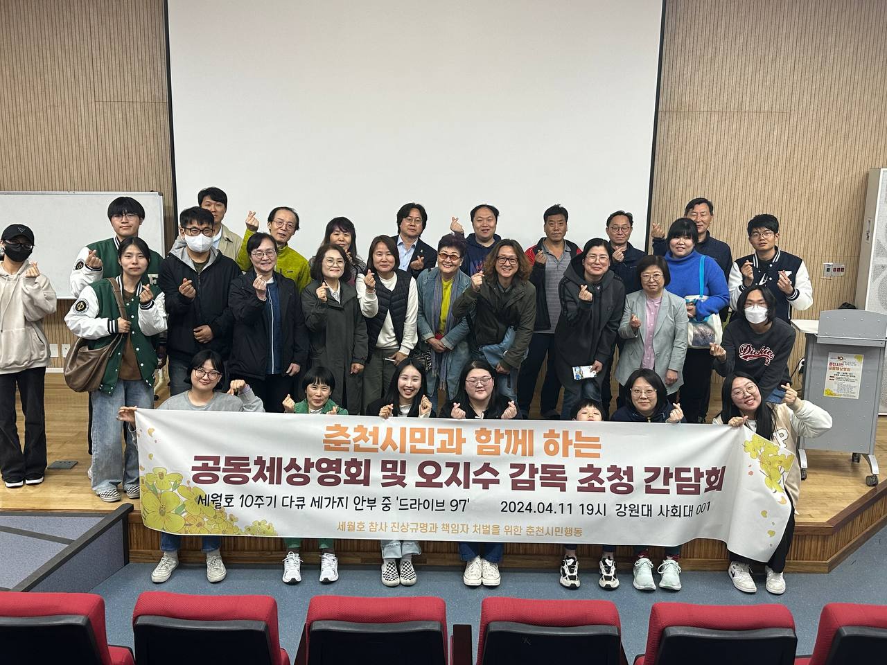 | 4월 10일- 개소식을 대신해서 22대 총선 개표방송을 시민연대 회의실에서 함께 봤습니다. 아직도 당시 쫄깃쫄깃했던 심장의 두근거림이 느껴집니다. 민주당이 다수석을 가졌지만, 조국혁신당이 돌풍을 일으켰지만 찝찝한 마음이 남는건 풀지 못해 산재된 문제들을 어떻게 풀것인지가 숙제로 남아 있다는 것 때문이겠지요... | 4월 11일- 세월호 참사 10주기 추모 다큐 "드라이브 97" 공동체 상영 | 4월 11일~ 4월 16일 - 세월호 추모 시민현수막 거리 게시 다큐상영회를 마치고 모인 시민들이 중앙로와 팔호광장에서 강대후문까지 시민들의 참여로 만들어진 200여개의 현수막을 게시했습니다. 10시가 넘어서야 일이 끝났지만 걸려진 현수막을 보니 뿌듯하기도 하고 슬프기도 하고 감정이 교차되는 건 거는이나 보는 이나 마찬가지 일듯 싶네요 |